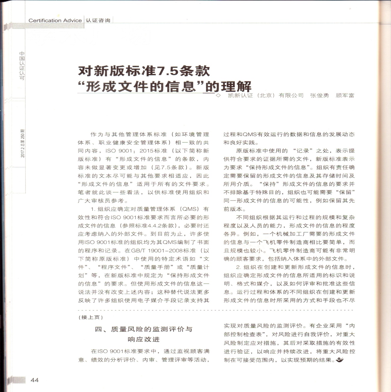 喜賀我公司顧軍富老師文章再獲《中國認證認可》雜志刊載
